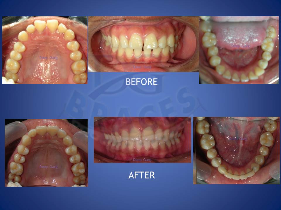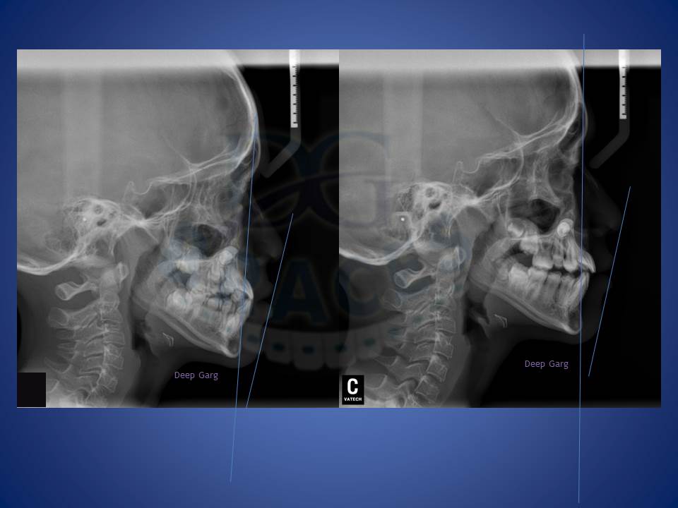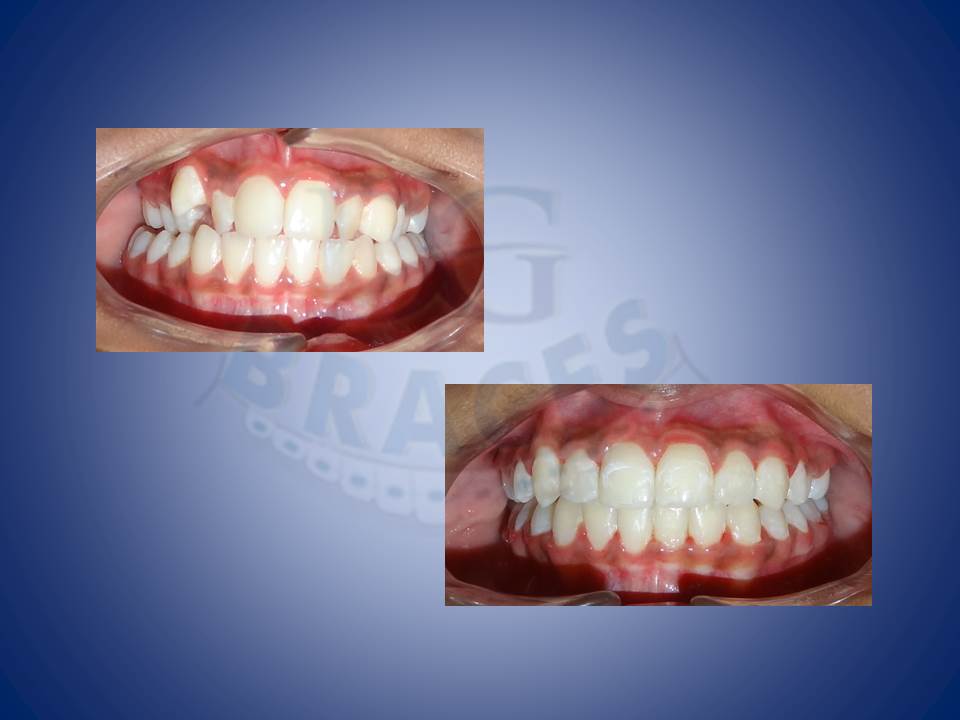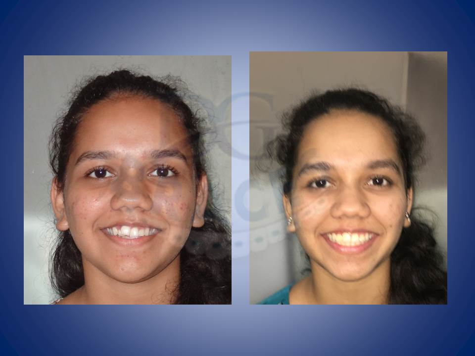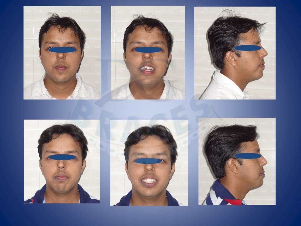 6.Lower jaw when forward can be corrected with the help of reverse pull head gear when treated at young age of 12-14 in boys and 10-12 yrs in girls. excellent result achieved here!!!