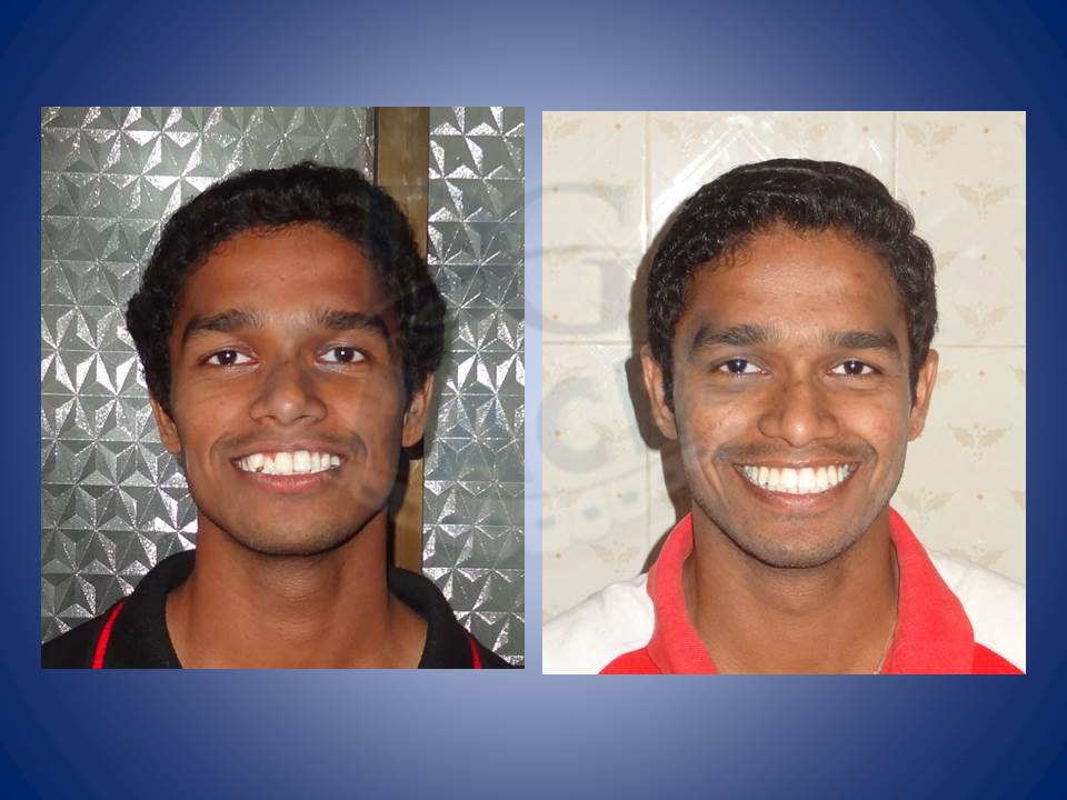6.Lower jaw when forward can be corrected with the help of reverse pull head gear when treated at young age of 12-14 in boys and 10-12 yrs in girls. excellent result achieved here!!!